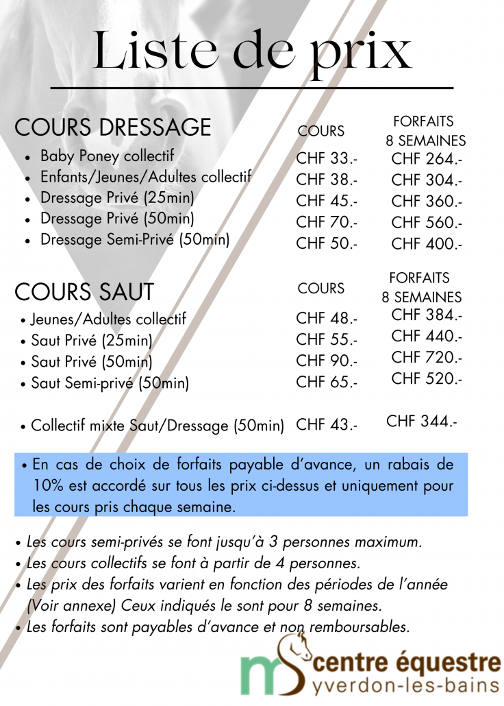 35.- CHF / enfant supplémentaire 30.- CHF /enfant supplémentaire